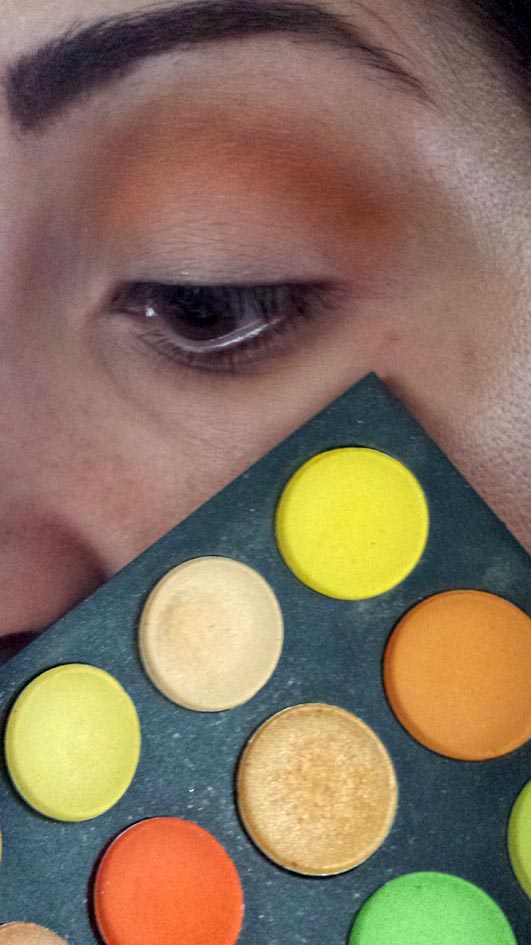 Fase 6: nella rima inferiore ho steso invece un ombretto color rame preso dalla palette da 120 colori di Zoeva (scusate il colore rosso della foto, è venuta male ma avevo poco tempo er non me ne sono accorta). Stendiamolo con un pennellino piccolo e sfumiamolo con dei movimenti da destra a sinistra.