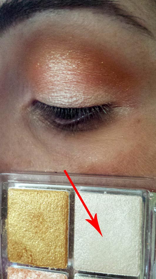 Fase 5: nell'angolo interno invece applichiamo l'ombretto color oro.