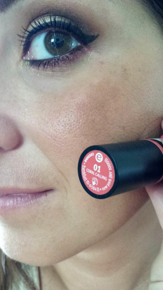 Fase 10: sulle guance ho steso il rossetto della Essence Longlasting numero 01.